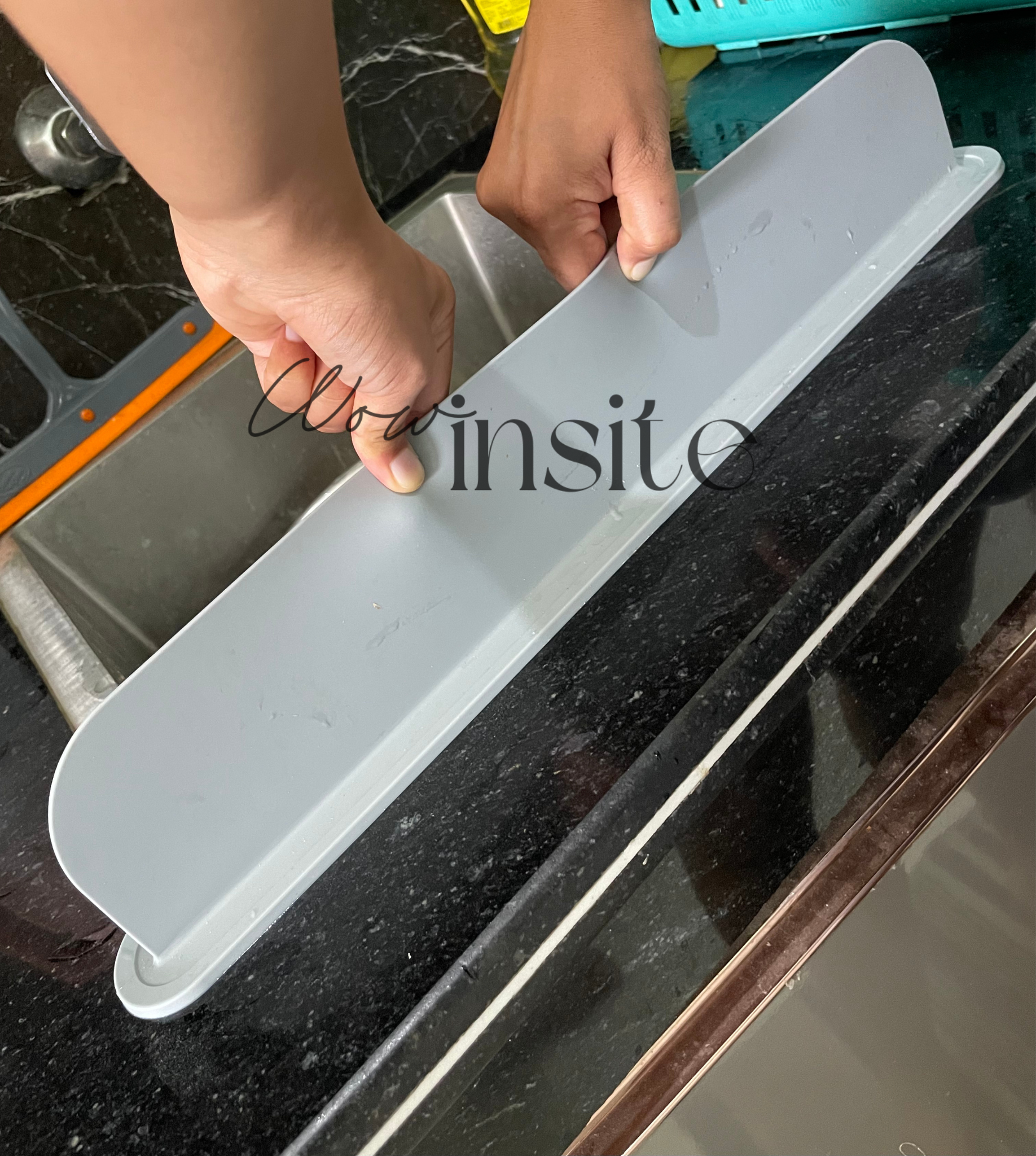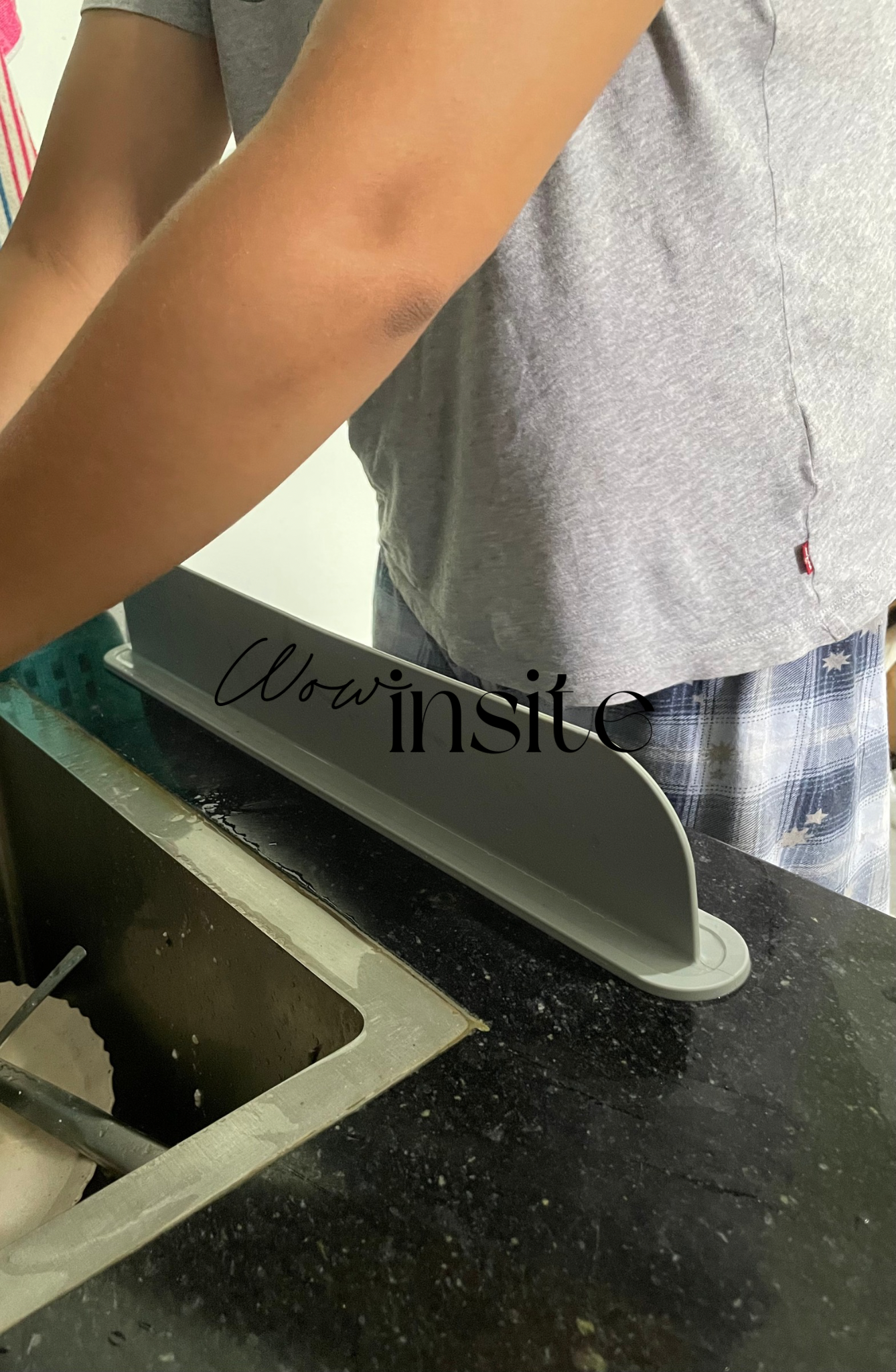 Keeps water from pooling behind the faucet. Easy to clean and install. A must-have for a tidy sink area!